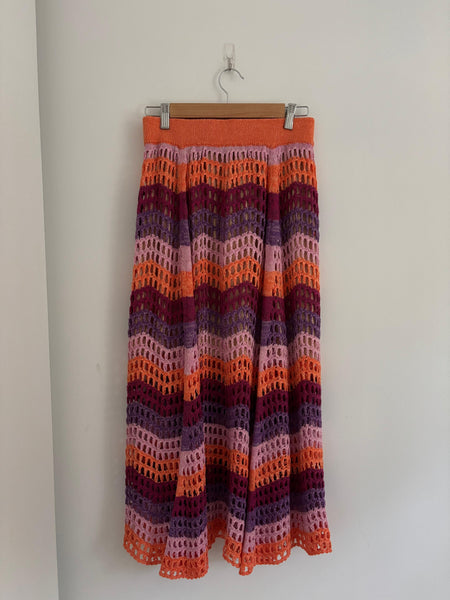 A colourful crochet midi skirt by the Brazilian designer Cecilia Prado. Very unique and the star of any outfit, this skirt is a statement in your wardrobe.