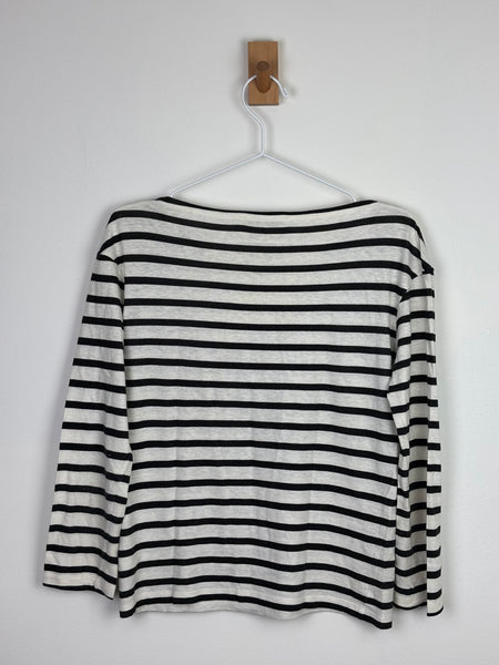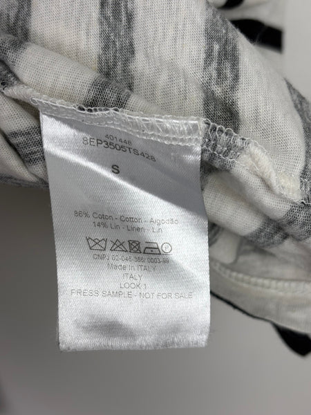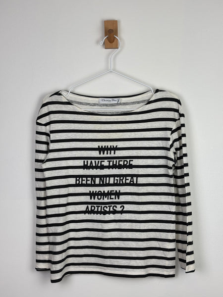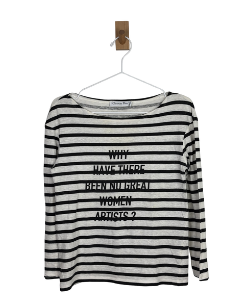 From Maria Grazia Chiuri’s seminal feminist-inspired collections, this Breton stripe top juxtaposes classic Parisian chic with a bold, intellectual statement. The lightweight knit offers a soft hand-feel and a timeless bateau neckline, ideal for layering under a Bar Jacket. This is a definitive collector's item that seamlessly blends contemporary sociopolitical discourse with Dior's high-craft aesthetic.