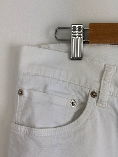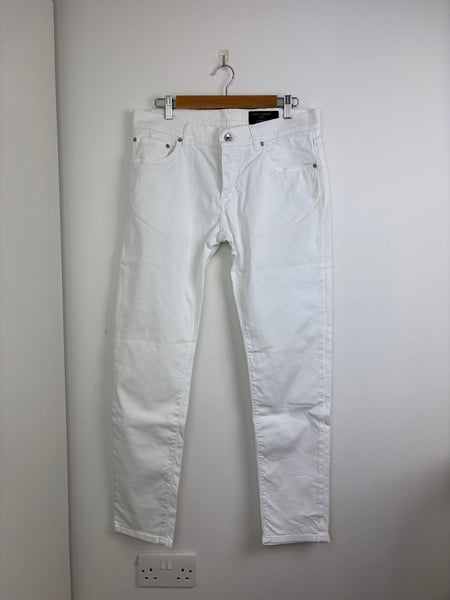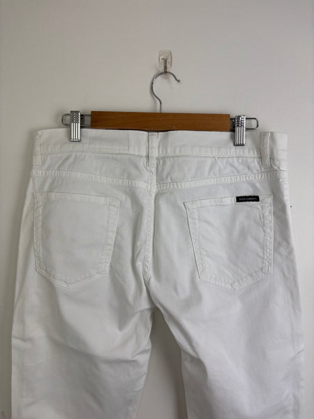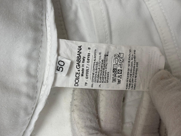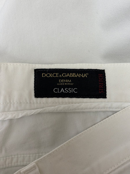 Dolce & Gabbana white skinny jeans with a clean, minimalist design. Made from high-quality cotton with a touch of stretch for a sleek silhouette and versatile styling.