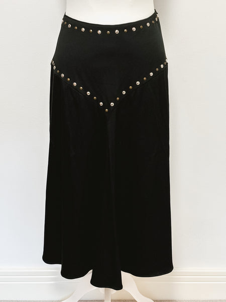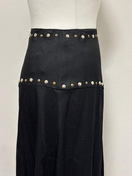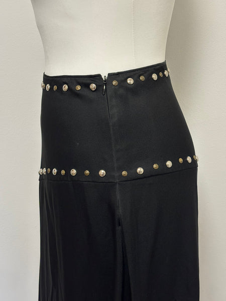 Effortlessly chic, this Moschino skirt brings a hint of edge with metallic stud detailing along the waistband and V-panel design. Cut to a fluid midi length, it offers movement and versatility – perfect for styling from day to evening.