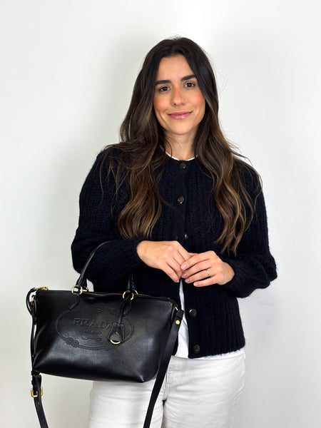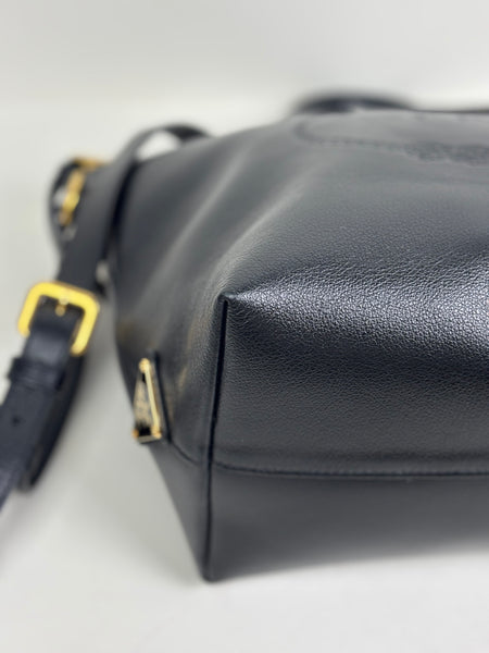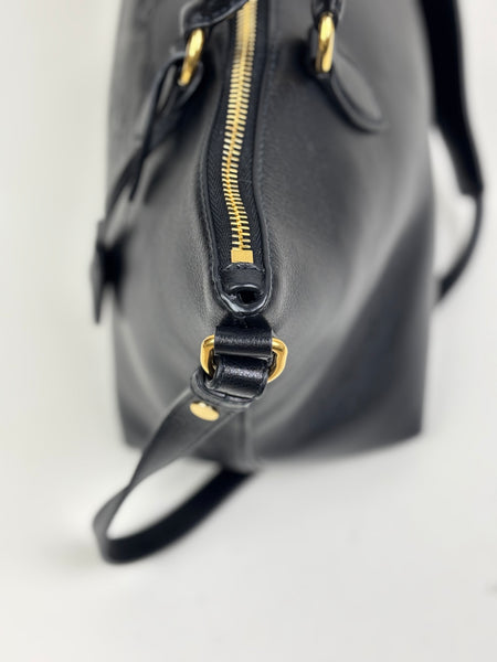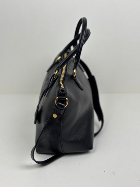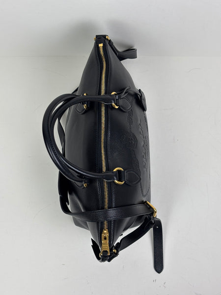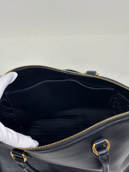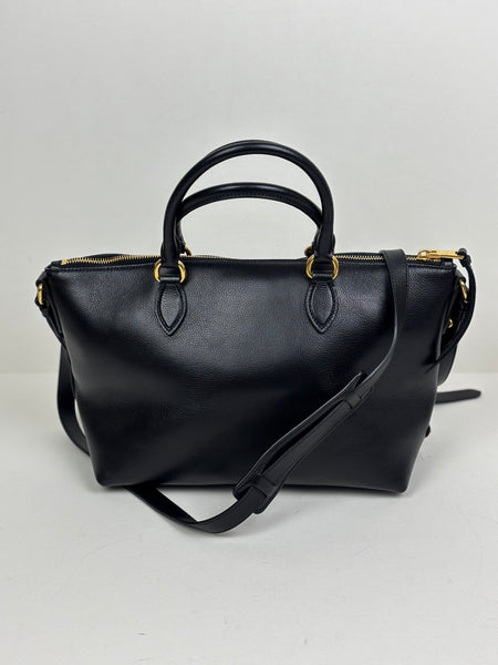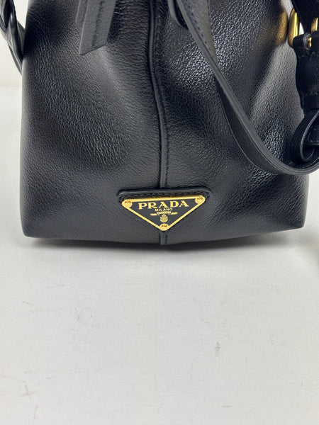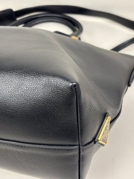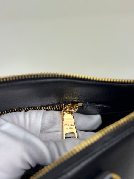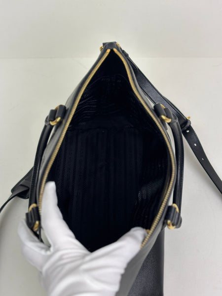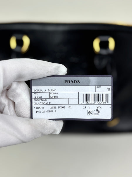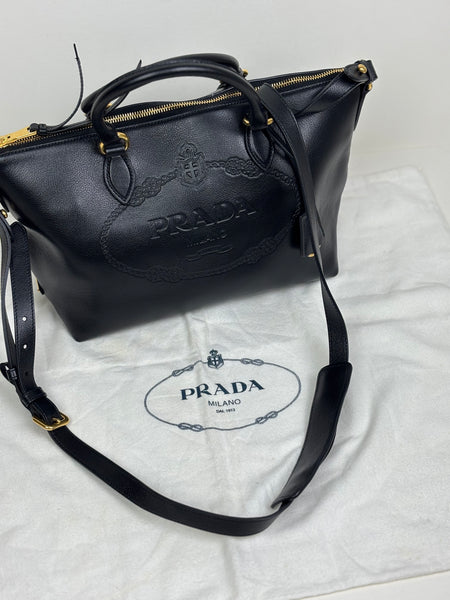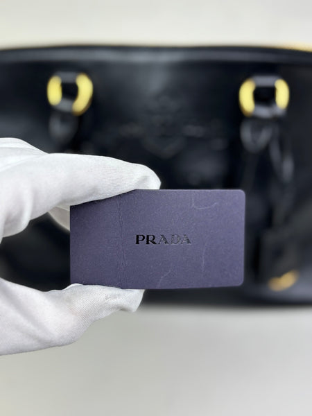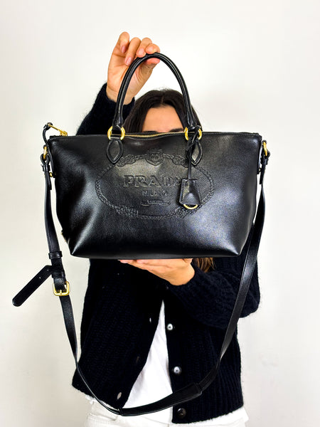 Crafted from supple Glacé calf leather with a subtle lustrous finish, this 'Borsa A Mano' features the iconic embossed Prada Milano heraldic crest and gleaming gold-tone hardware. Its structured yet soft silhouette offers a timeless transition from professional engagements to weekend activities.