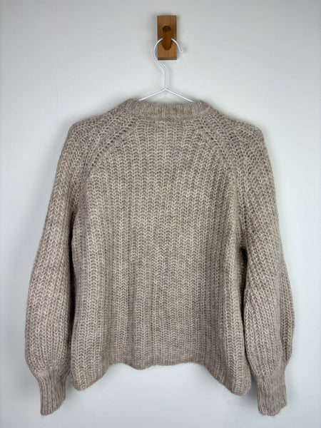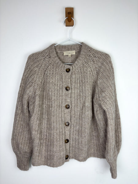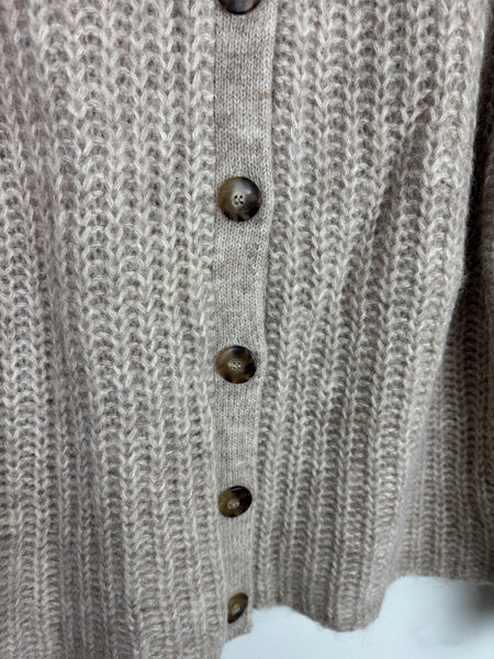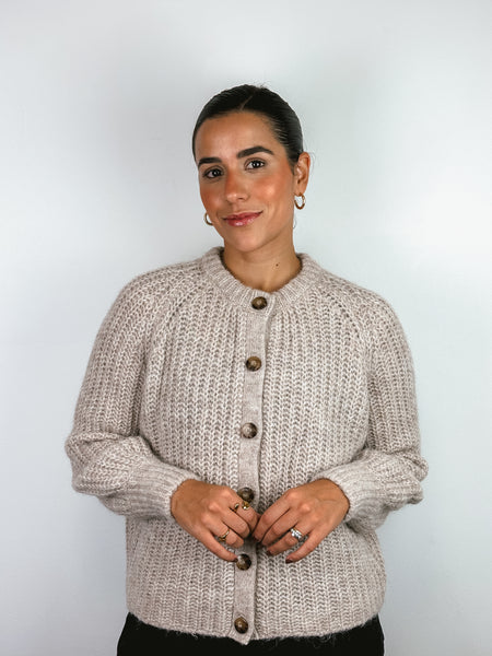 A Sézane classic — this chunky knit cardigan is crafted from a soft wool blend with a tactile, hand-knit feel. Featuring ribbed detailing, tortoiseshell buttons, and a relaxed fit, it brings warmth and understated charm to any look. Sézane Emile cardigan.
