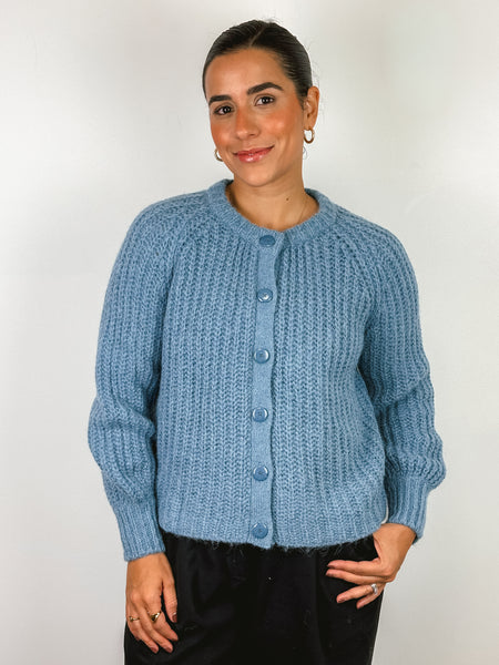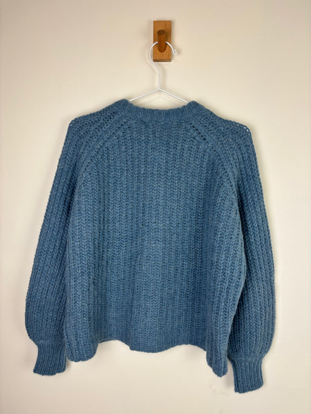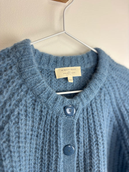 A bold twist on a Sézane favourite. This royal blue cardigan is crafted in a soft, chunky wool blend that adds both warmth and statement colour to your wardrobe. Designed with ribbed texture, tonal buttons, and a relaxed fit that layers beautifully over shirts or dresses — the perfect pop of colour for cooler days. Sézane Emile cardigan.