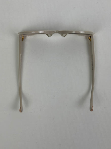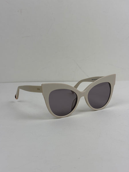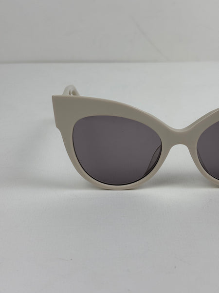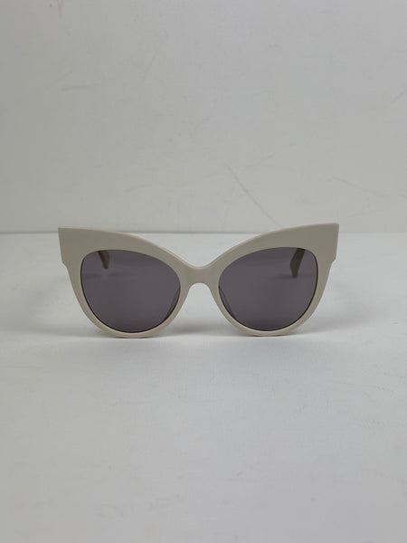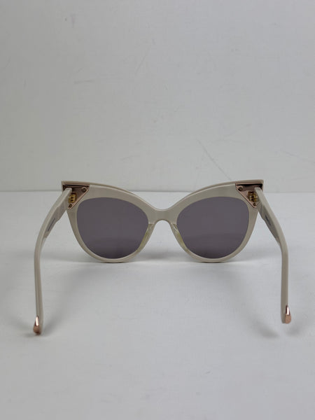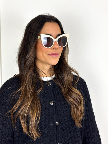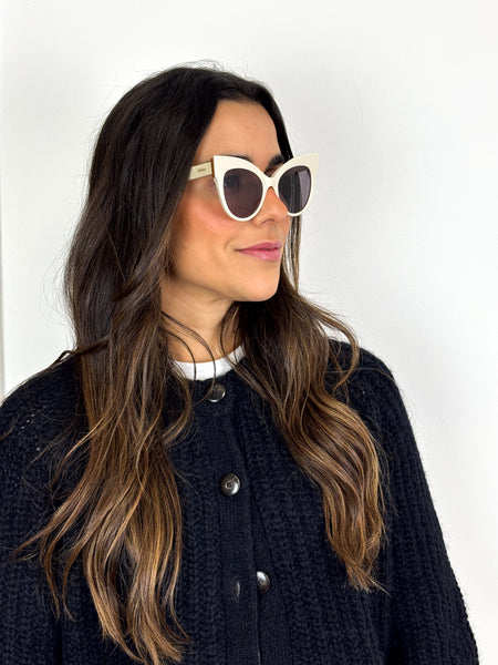 Channeling cinematic Italian glamour, the 'Anita' sunglasses feature a bold, architectural cat-eye frame in a sophisticated ivory palette with subtle rose-gold metal accents. The generous proportions and tonal grey lenses offer a high-fashion edge, providing the perfect finishing touch for a curated, tonal ensemble.